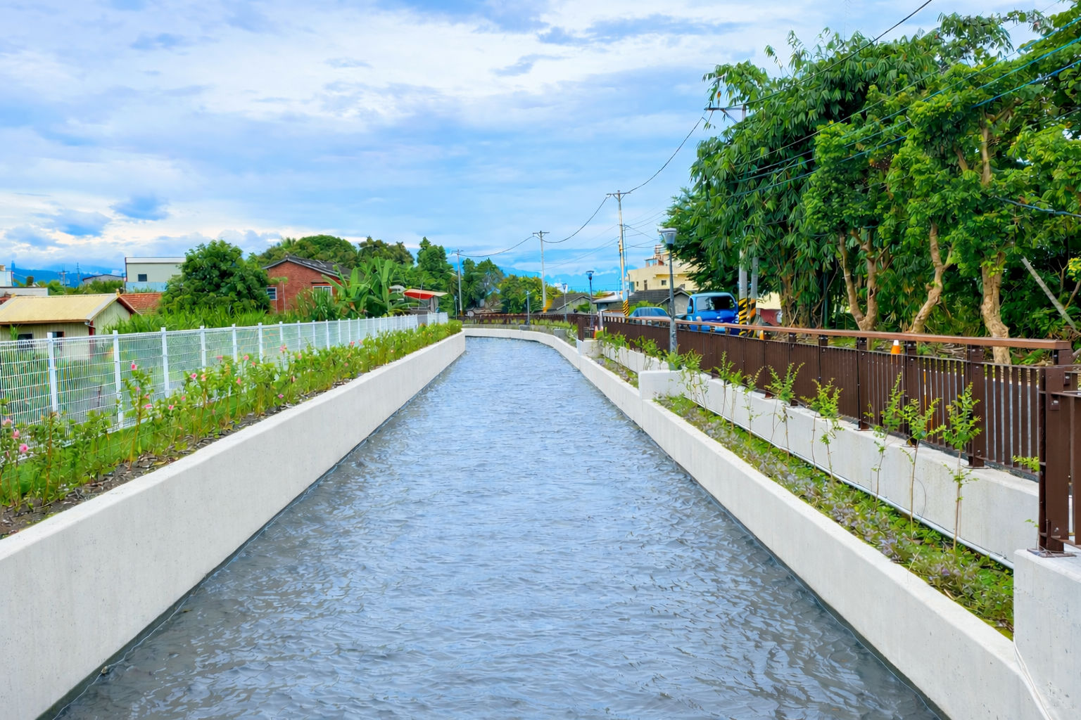 農水署指出,本工程除強化圳路結構及農業水資源韌性外,亦結合在地社區需求,落實民眾參與工程精神。依照民眾參與工程之建議,將原本頂寬10公尺之內面工,更新為頂寬8公尺複合式斷面後,沿線釋出之空間優先供道路拓寬至3.5公尺以上,剩餘用地做為綠地保留,並串聯左右岸道路形成完整動線,不僅提升未來圳路維護管理便利性,亦兼顧社區救護通行與行車安全。另針對平行圳路長度約40公尺、寬度5至15公尺之閒置用地,規劃以開放式涼亭為核心,營造社區公園空間,提供社區志工隊活動集會及居民休憩交流場所,提升公共空間使用效益。