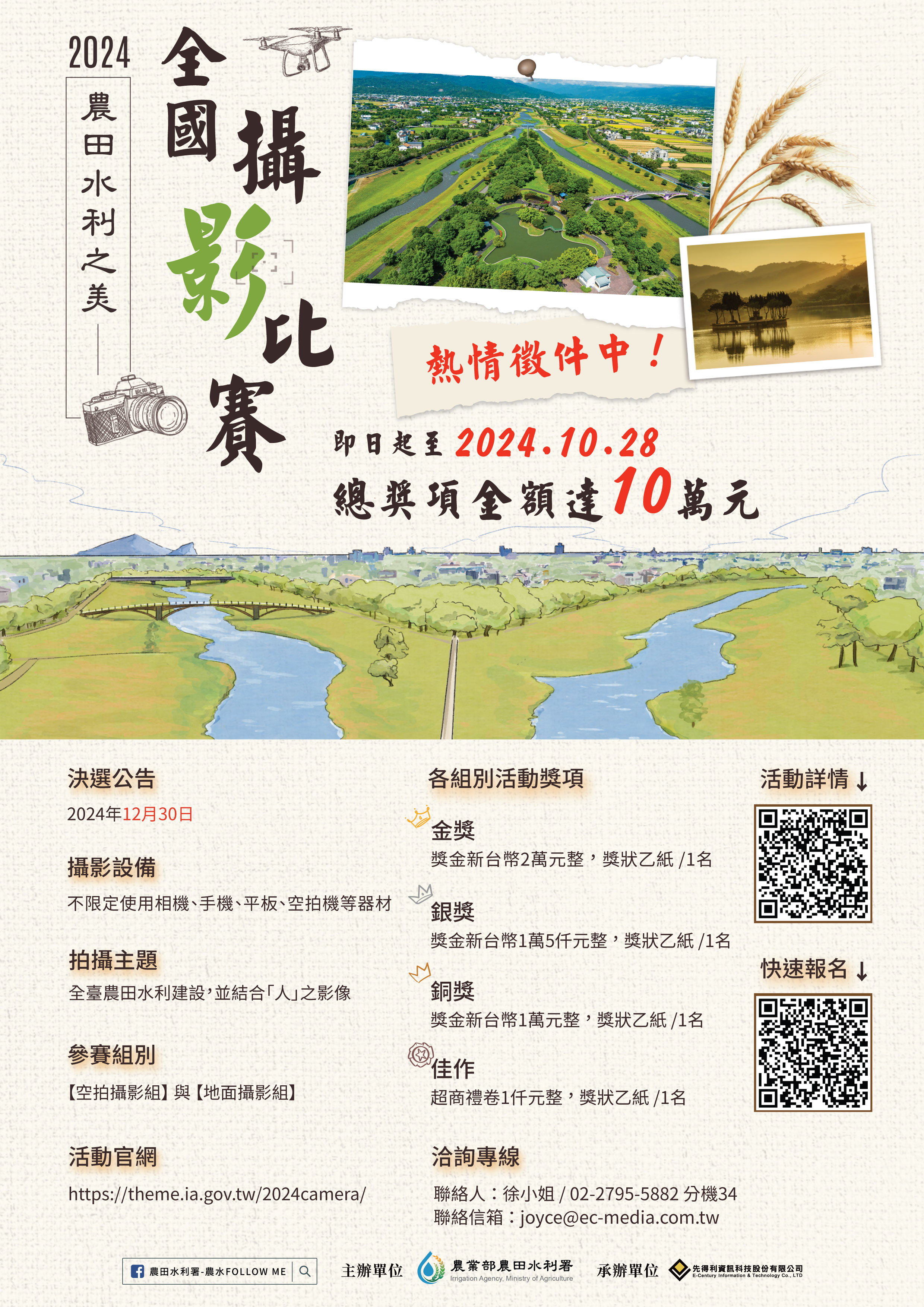 2024 農田水利之美全國攝影大賽 總獎項金額達10萬元!等您來挑戰!